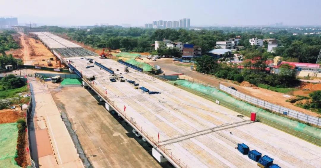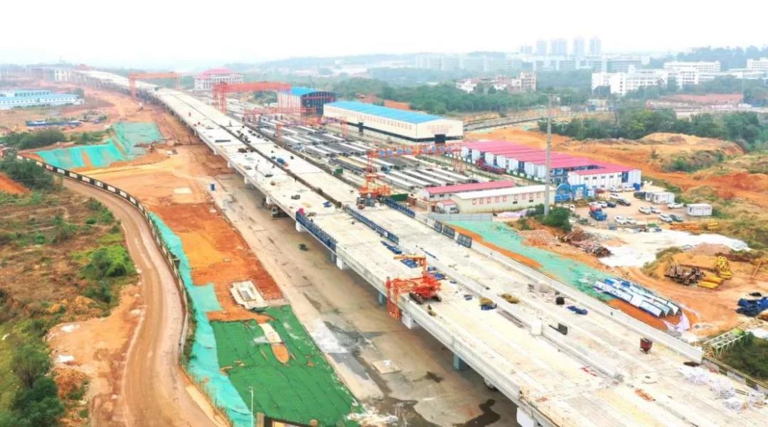 蓉江三路快速路(含地下綜合管廊)項(xiàng)目作為“四橫六縱”中的一條南北走向主干線,南起丁香路,北至筱壩大橋南端接地點(diǎn),總投資約25.87億元,全長約5.1公里,主路為高架段城市快速路,規(guī)模為雙向6車道。項(xiàng)目于2020年8月1日正式開工,截至2021年11月15日,共完成總工程量的51%,其中橋梁工程完成66.2%,道路工程完成48.7%,地下綜合管廊工程完成約84.6%,預(yù)計在2022年年底完工。項(xiàng)目建成后,可實(shí)現(xiàn)蓉江新區(qū)、高鐵新區(qū)南北向聯(lián)系,大大提高新老城區(qū)交通服務(wù)水平,實(shí)現(xiàn)贛州交通發(fā)展水平與社會經(jīng)濟(jì)發(fā)展水平相適應(yīng)。