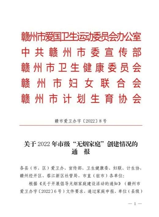 5月31日,在贛州市第35個(gè)世界無(wú)煙日“煙草危害環(huán)境”主題宣傳活動(dòng)會(huì)議上,贛州市愛(ài)國(guó)衛(wèi)生運(yùn)動(dòng)委員會(huì)公布了2022年市級(jí)“無(wú)煙單位” 、“無(wú)煙家庭”名單。贛州城投集團(tuán)榮獲“市級(jí)無(wú)煙單位”榮譽(yù)稱號(hào),五名員工家庭喜獲“無(wú)煙家庭”榮譽(yù)稱號(hào)。