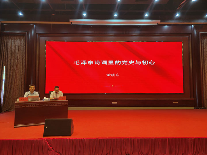 黃曉東同志以《毛澤東詩(shī)詞里的黨史與初心》為主題,以毛澤東同志的革命道路為主線,品讀毛澤東同志不同時(shí)期的詩(shī)詞,從離愁別恨里的黨史與初心等10個(gè)方面,回溯偉人立志報(bào)國(guó)救亡、書生意氣的青年時(shí)代、艱苦卓絕的革命崢嶸歲月、如火如荼的社會(huì)主義革命和建設(shè)歷程,彰顯偉人獨(dú)具魅力的個(gè)性情懷和豪邁氣概,闡述了共產(chǎn)黨人的初心與使命。