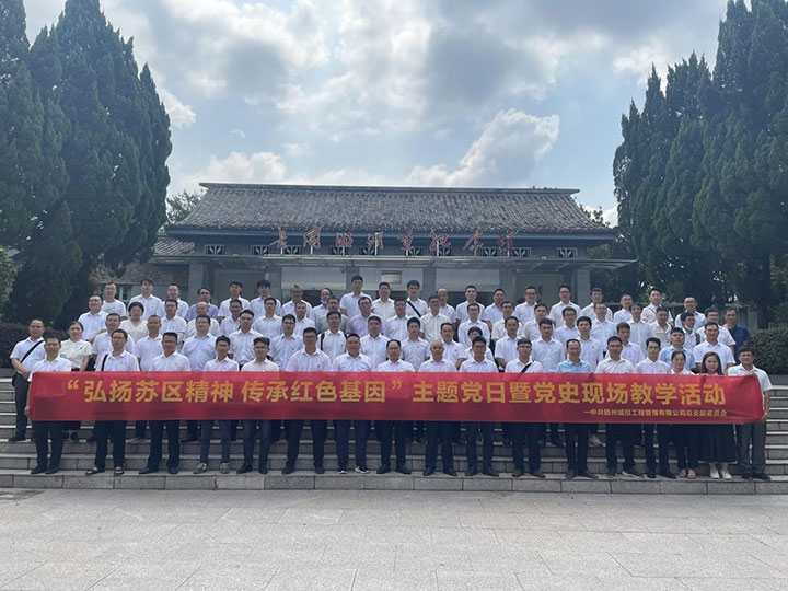 6月19日,工程管理公司黨總支赴興國縣組織開展“弘揚(yáng)蘇區(qū)精神 傳承紅色基因”主題黨日暨黨史學(xué)習(xí)教育現(xiàn)場教學(xué)活動(dòng)。工程管理公司黨總支全體黨員、發(fā)展對象、入黨積極分子、公司部門(項(xiàng)目部)負(fù)責(zé)人及蟠龍大橋項(xiàng)目臨時(shí)聯(lián)合黨支部支委成員共計(jì)80余人參加。