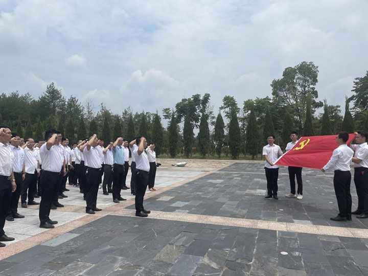 大家首先前往蘇區(qū)時(shí)蘇維埃政府工作的模范鄉(xiāng)——長岡鄉(xiāng),領(lǐng)悟中國共產(chǎn)黨人深厚的為民情懷、科學(xué)的思想方法和務(wù)實(shí)的工作作風(fēng)。隨后大家懷著對革命先烈無比崇高的敬意瞻仰了中央蘇區(qū)烈士陵園。在烈士紀(jì)念碑前,整齊列隊(duì),懷著無比崇敬的心情,向革命先烈敬獻(xiàn)花籃,默哀并三鞠躬,深切緬懷革命先烈。全體黨員在莊嚴(yán)的黨旗下,高舉右拳重溫入黨誓詞,再次接受心靈的凈化和洗禮,銘記共產(chǎn)黨員初心使命。工程管理公司一、二支部還宣講了黨史故事,講述了江善忠“死到陰間不反水,保護(hù)共產(chǎn)黨萬萬年”和李美群“馬前托孤女英雄”的英烈事跡。