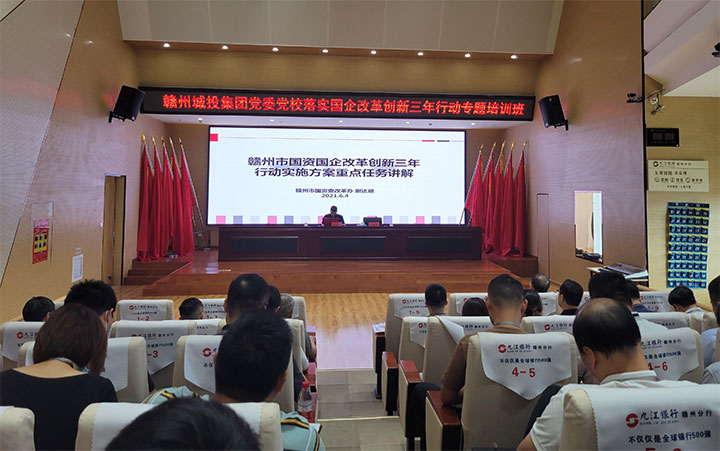 6月23日下午,贛州城投集團(tuán)黨委黨校舉辦落實(shí)國(guó)企改革創(chuàng)新三年行動(dòng)專題培訓(xùn)班,集團(tuán)黨委委員、總工程師王遠(yuǎn)平,黨委委員、紀(jì)委書(shū)記曾富有出席,市國(guó)資委宣教科科長(zhǎng)謝達(dá)迎應(yīng)邀作專題輔導(dǎo),集團(tuán)全體中層管理人員,相關(guān)部門(mén)、子公司人員共計(jì)70余人參加培訓(xùn)。