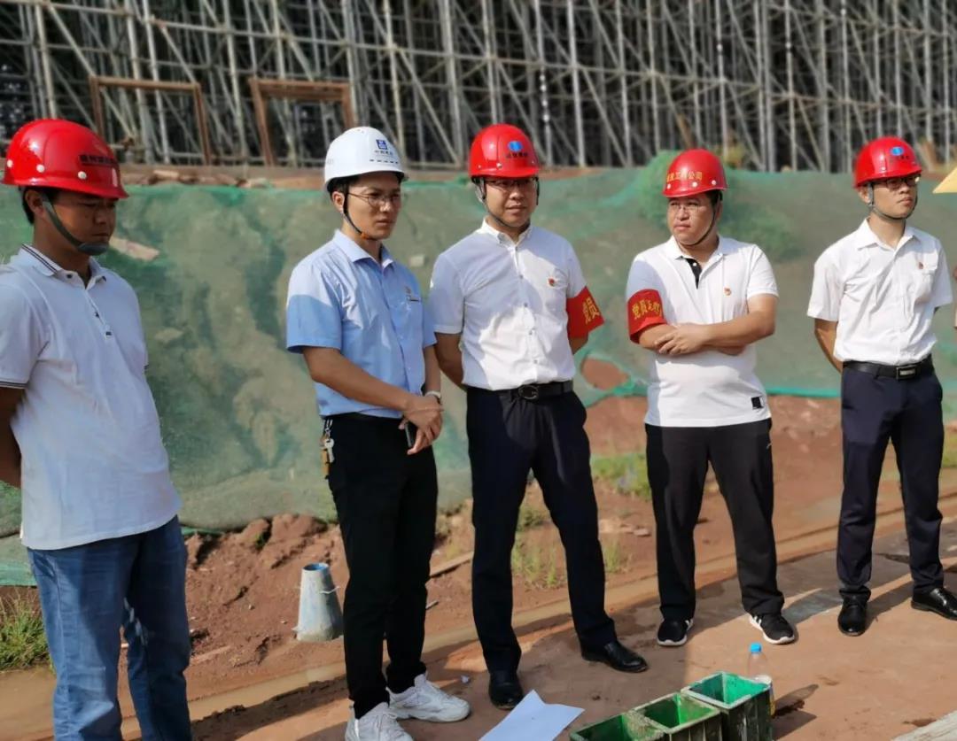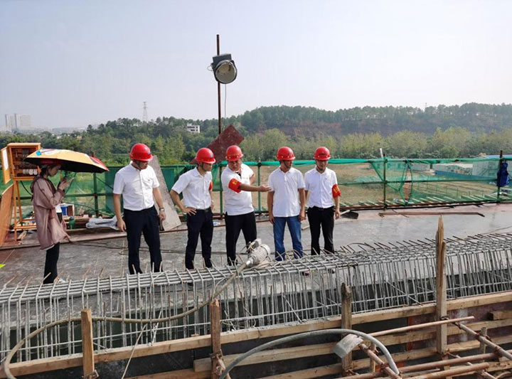 在蟠龍大橋項(xiàng)目,臨時(shí)黨支部與城投建工黨支部的黨員查看現(xiàn)場(chǎng)澆筑等工作情況,商量協(xié)調(diào)解決運(yùn)輸車輛等問(wèn)題,確保項(xiàng)目上的混凝土澆筑施工循序推進(jìn)。