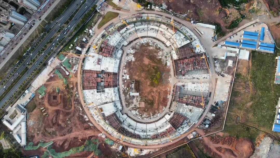 在全民健身中心項(xiàng)目,綜合體育場(chǎng)混凝土結(jié)構(gòu)工程累計(jì)完成58%。