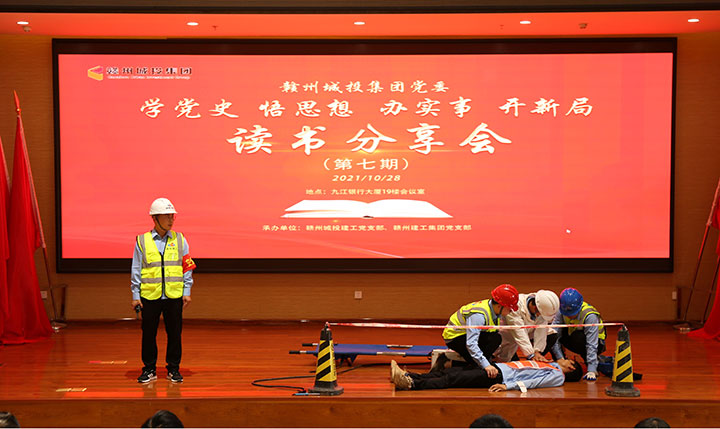 活動在紅色歌曲《唱支山歌給黨聽》中拉開帷幕,抒發(fā)了城投人對黨、對祖國的無比熱愛之情。讀書分享活動中,來自贛州城投建工黨支部、贛州建工集團黨支部的6位選手結(jié)合黨史學(xué)習(xí)教育和工作實際,以蓬勃的朝氣、真摯的感情,熱情謳歌了中國共產(chǎn)黨建黨100年來創(chuàng)下的豐功偉績,深情講述了革命先輩的感人事跡,突出宣傳了國企改革、創(chuàng)新發(fā)展、項目攻堅等方面取得的重大成就,充分展現(xiàn)了城投集團廣大黨員職工為群眾服務(wù)、愛崗敬業(yè)、無私奉獻(xiàn)的精神風(fēng)貌。以賽促學(xué)、以賽明史,經(jīng)過角逐,贛州建工集團黨支部的陳文港以優(yōu)異表現(xiàn)獲得第一名,贛州城投建工黨支部的曾涵鈺獲得第二名,其余選手獲得優(yōu)秀獎。讀書分享活動前,來自項目一線員工還為大家表演了情景劇《觸電事故應(yīng)急演練》,進(jìn)一步為大家普及安全知識,提高大家的安全意識。