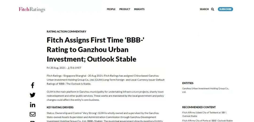 2021年,積極推進(jìn)境外評(píng)級(jí),并成功于8月20日獲惠譽(yù)國際信用評(píng)級(jí)機(jī)構(gòu)授予BBB-國際投資級(jí)評(píng)級(jí),為境外債發(fā)行奠定了良好基礎(chǔ)。10月12日,在香港聯(lián)交所成功發(fā)行首單境外高級(jí)無抵押信用債券,金額1.5億美元,票面利率3.0%,期限3年,創(chuàng)江西省內(nèi)自身信用評(píng)級(jí)發(fā)行票面利率最低,成為贛州市首家發(fā)行境外債券的市級(jí)國有平臺(tái)企業(yè)。集團(tuán)發(fā)行境外債工作被列為全省、全市典型案例之一。