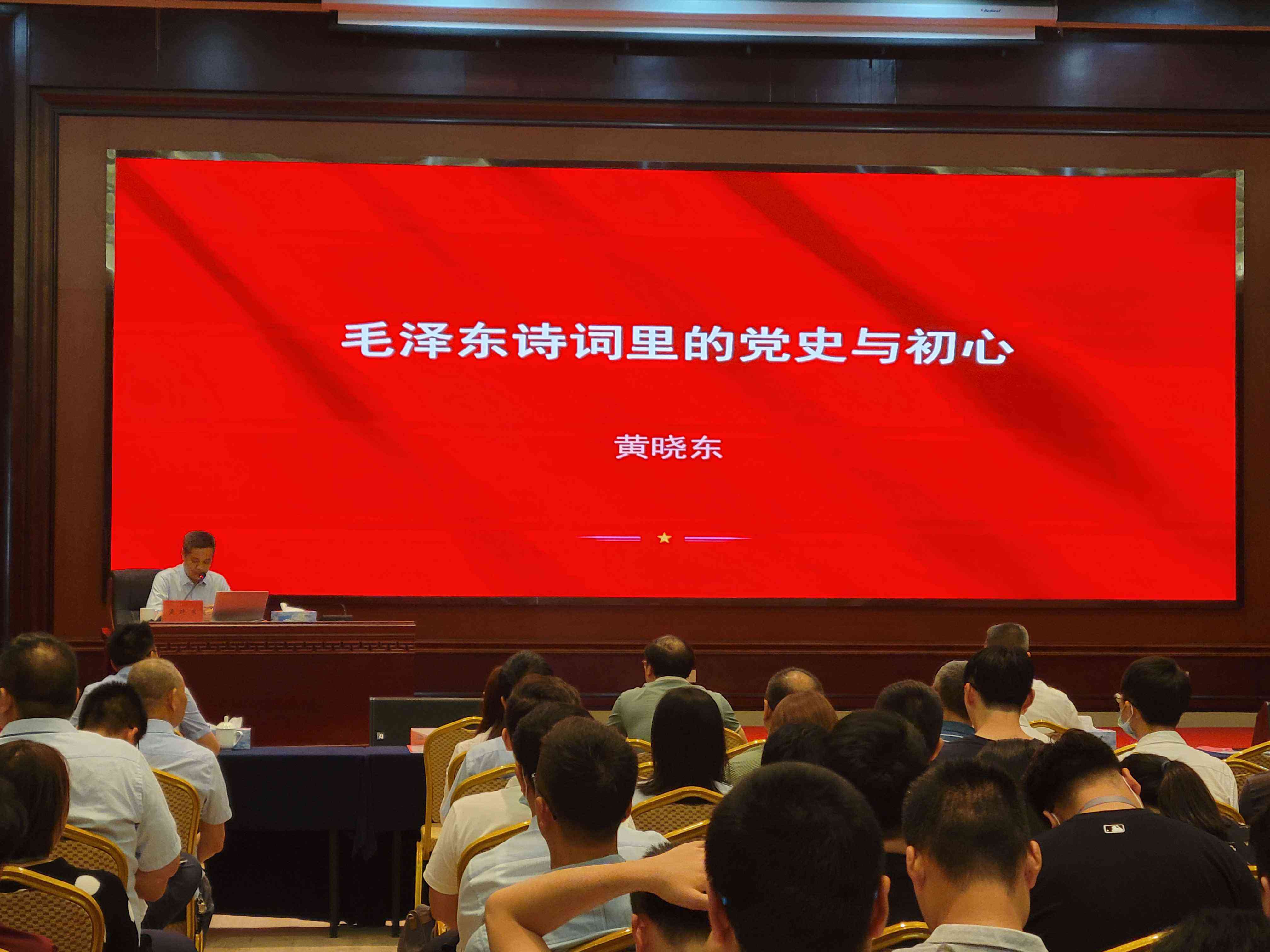 黃曉東同志以《毛澤東詩詞里的黨史與初心》為主題,以毛澤東同志的革命道路為主線,品讀毛澤東同志不同時(shí)期的詩詞,從離愁別恨里的黨史與初心等10個(gè)方面,回溯偉人立志報(bào)國救亡、書生意氣的青年時(shí)代、艱苦卓絕的革命崢嶸歲月、如火如荼的社會主義革命和建設(shè)歷程,彰顯偉人獨(dú)具魅力的個(gè)性情懷和豪邁氣概,闡述了共產(chǎn)黨人的初心與使命。