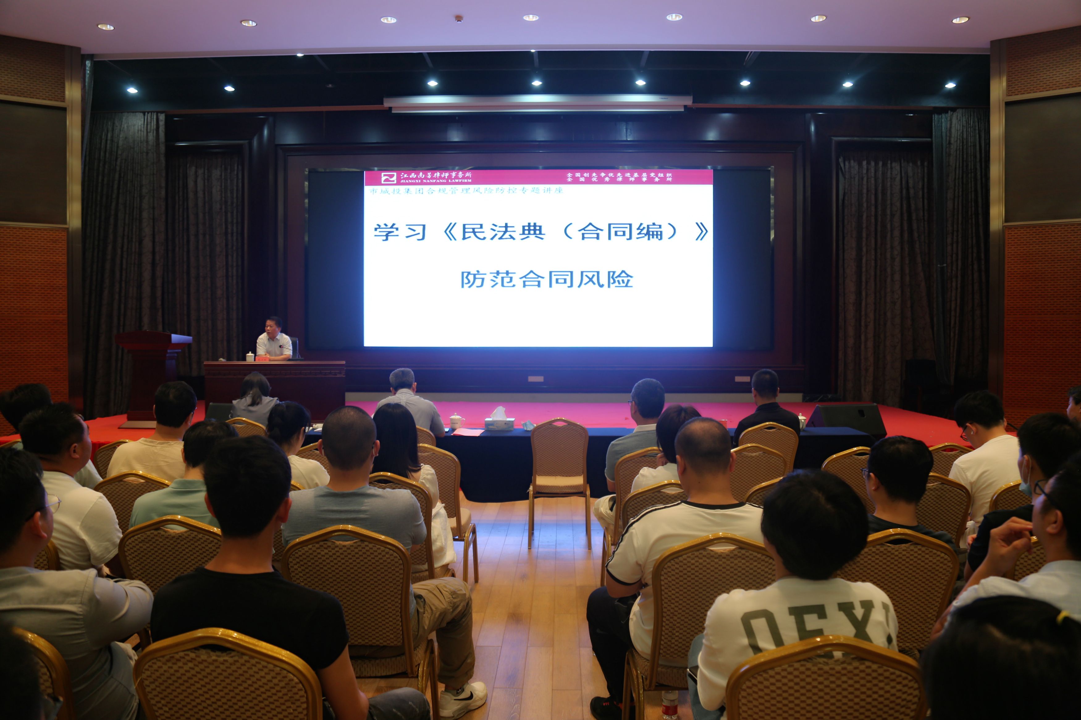 (上圖為江西南芳律師事務所范衛(wèi)權為贛州城投集團全體員工解讀《民法典》合同編部分)