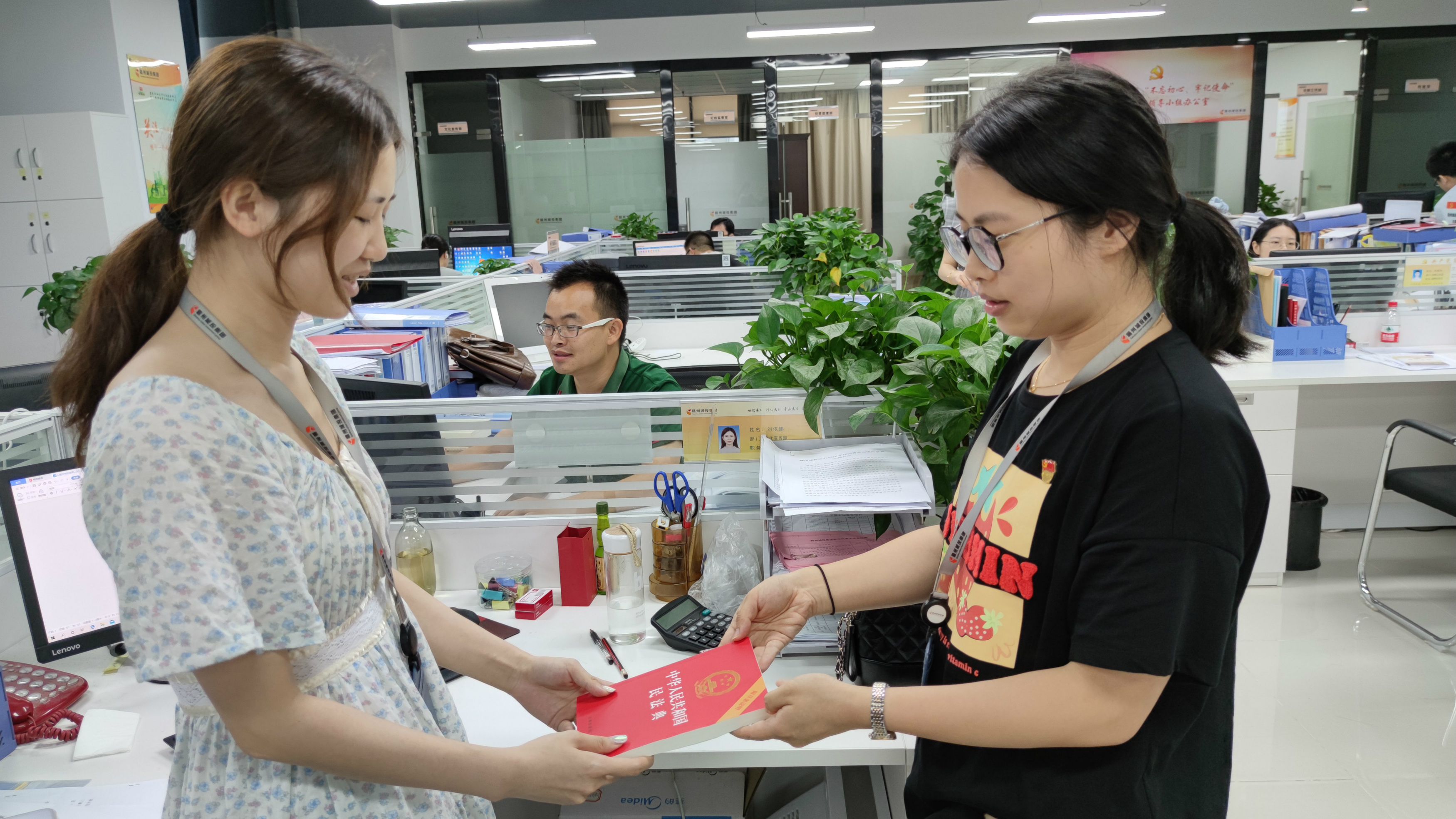 (上圖為贛州城投集團給員工發(fā)放《民法典》)