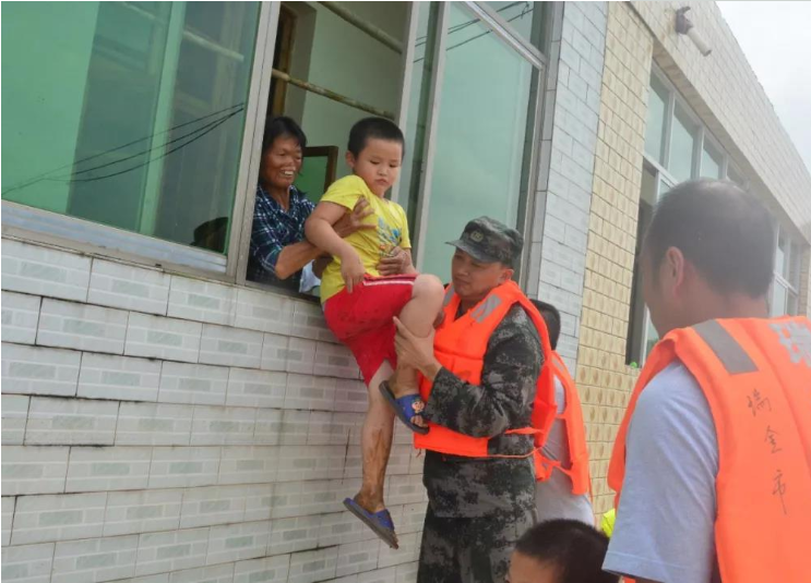 軍民魚水,無私守望。整個救援過程中,劉波同志沖鋒在前、甘當人梯。他頻頻上演飛身一跳,把身處險境的群眾托舉上岸;他把自己當梯子,讓困在屋內的老人踩著肩膀下到船上;他把兩歲幼兒抱在懷里,用自己的體溫捂暖瑟瑟發(fā)抖的孩子……這一幕幕驚險而溫暖的救人場景,被災區(qū)群眾深深銘記,紛紛點贊。